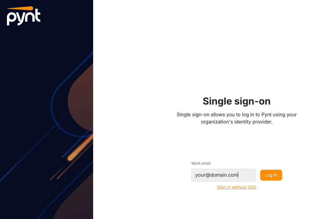 Pynt's login page contains an option to sign in with SSO -