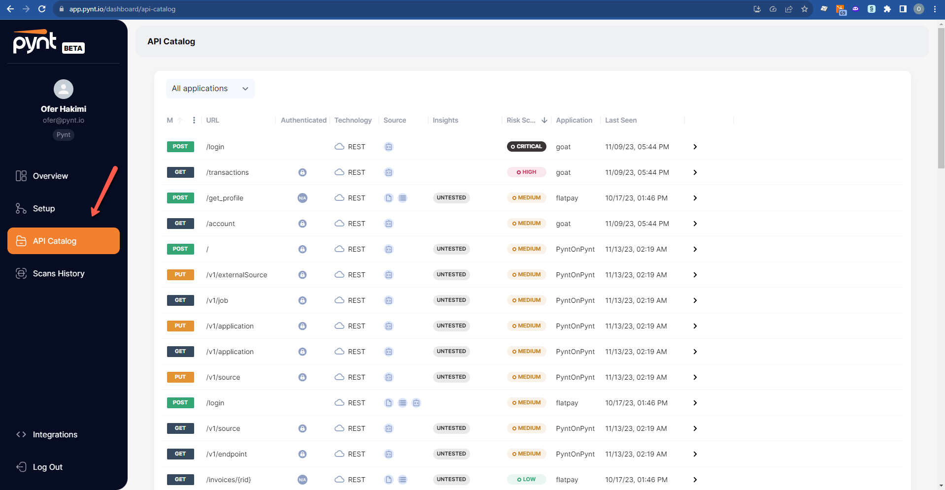 The API catalog view empowers you to effortlessly explore, understand, and manage your organization's **API security posture**. Gain clear insights into your API landscape, aiding in effective decision-making and security assessments.