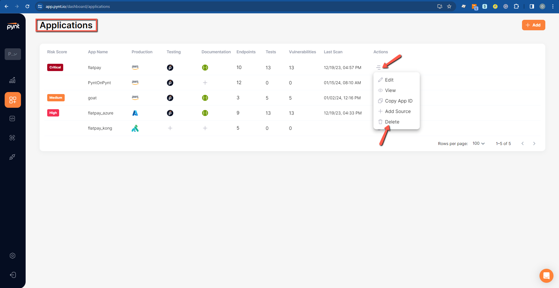 Effortlessly delete applications with Pynt's intuitive setup. Streamline API discovery and security seamlessly.