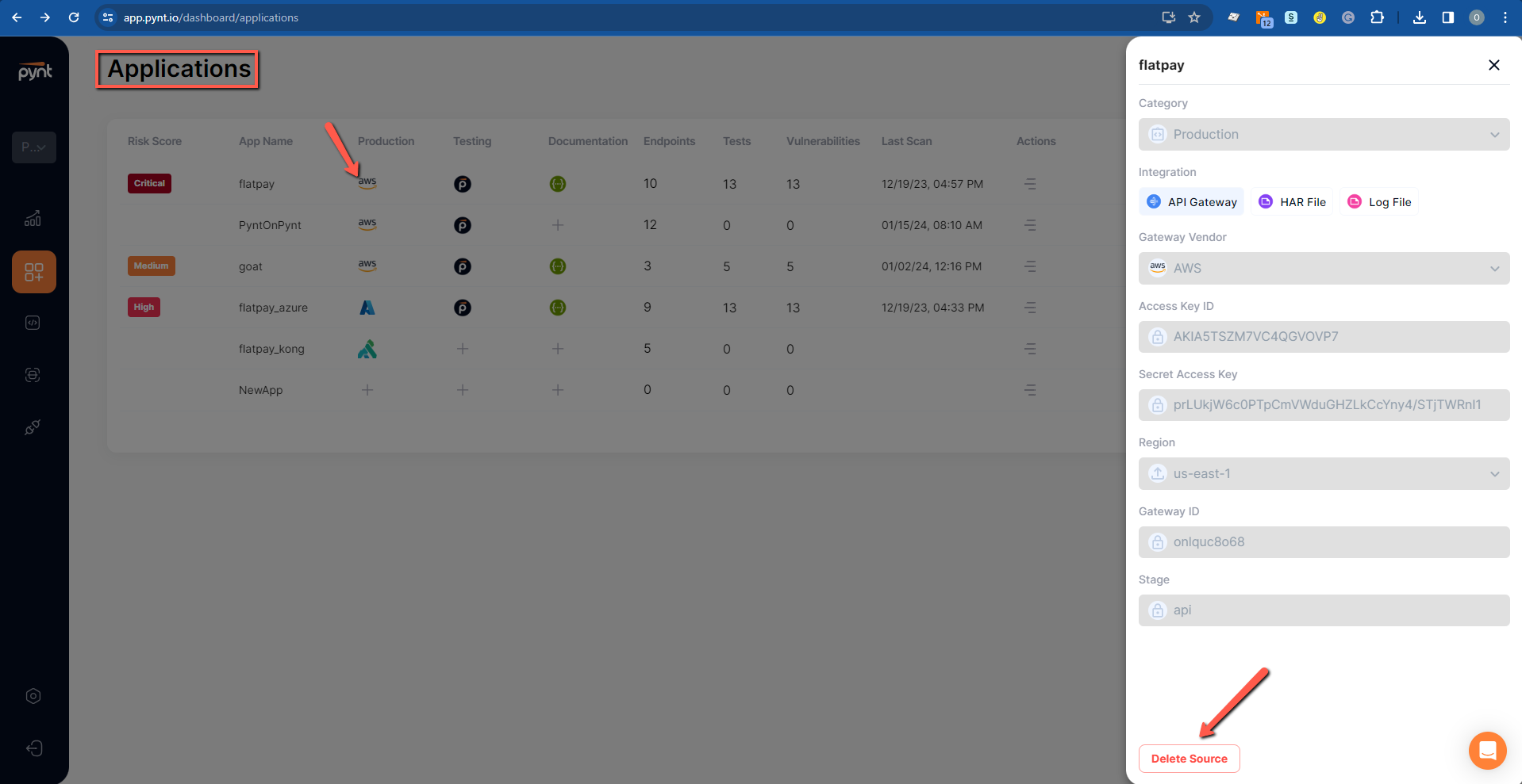 Easily delete sources in Pynt, to keep your API security management clean and organized. Pynt’s user-friendly interface allows you to quickly remove any unnecessary sources, ensuring your focus remains on the most relevant data. This efficient process helps maintain an up-to-date and clutter-free security environment, allowing you to manage and protect your APIs more effectively.