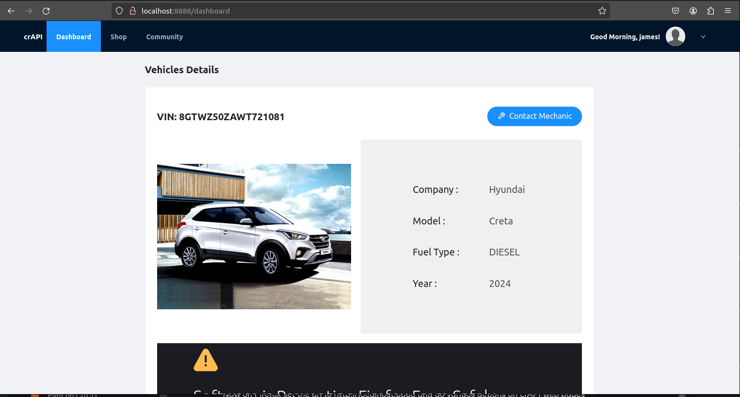 Now on Firefox set the url to <http://localhost:8888> and do various actions on crAPI web pages